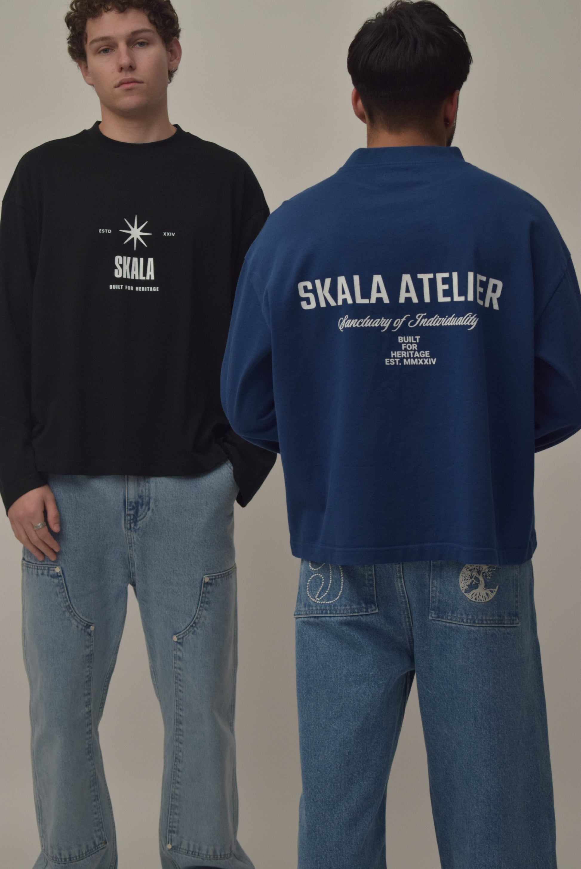 Crafted from 100% premium combed cotton at a weight of 305 GSM, this long-sleeve cropped T-shirt embodies SKALA’s pursuit of luxury, comfort, and timeless style. The midnight navy hue offers a refined elegance, while the boxy cropped silhouette delivers a modern edge—balancing heritage with contemporary streetwear appeal.