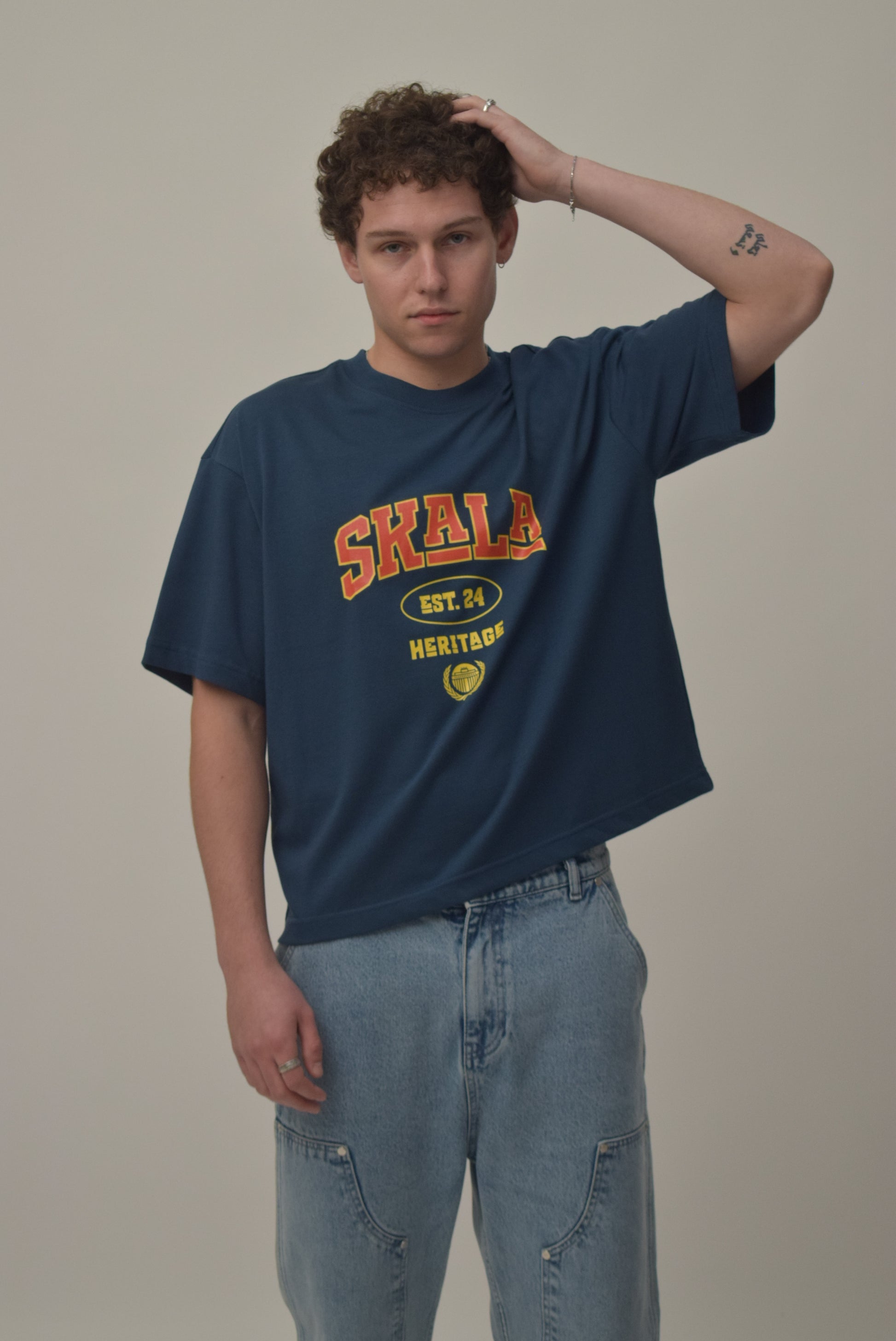 The Skala Varsity Tee is a bold tribute to legacy, identity, and movement. Featuring a classic collegiate design with arched varsity lettering and a proud 2024 emblem, this boxy-fit tee blends timeless athletic aesthetics with modern streetwear edge.